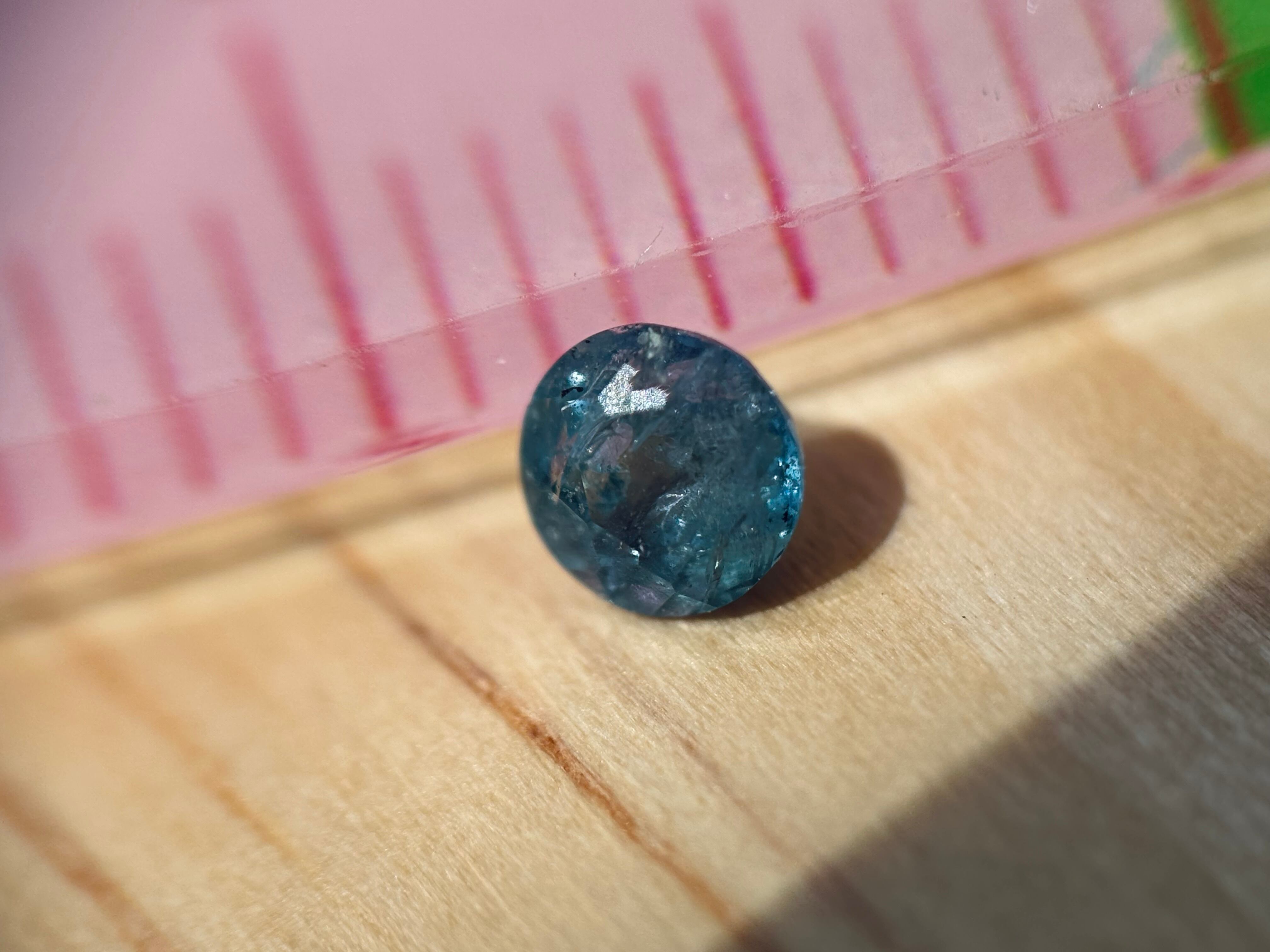 クラックもインクルもある子ですが、それも相まって多色性を引き立てており、観察しがいのあるルースです。コロコロ転がすうちに色を変える点は、ラウンドカットならではの味わいですね!