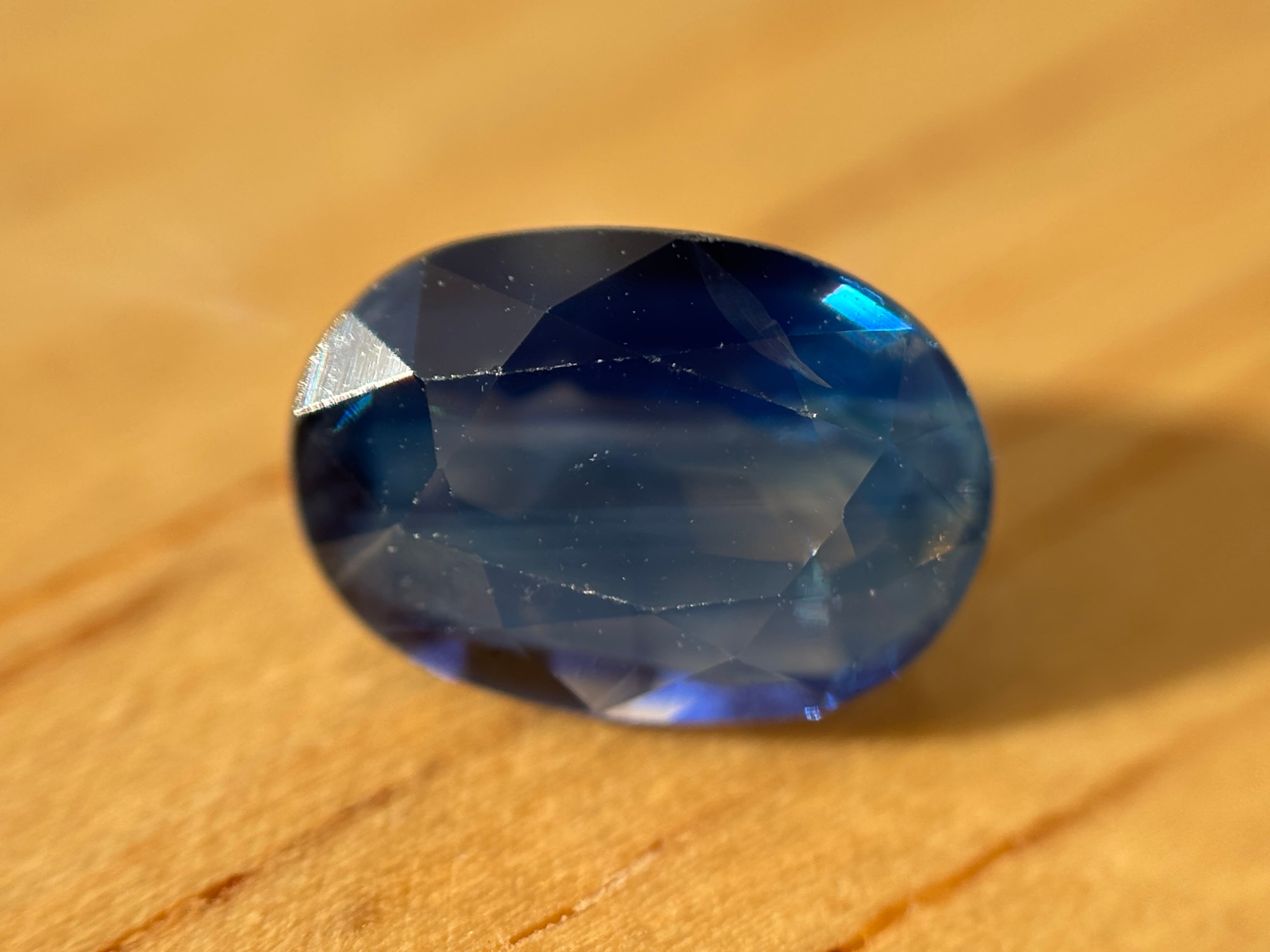 シルキーサファイアにおいてのシラーは、シルク状のインクルージョンによって見えるオレンジや黄色などの暖色系の光をそう呼ばれております。このルースには横筋のインクルージョンが入っており、日光の元で観察するとなんともカラフルな光をチラチラと見せて美しいです。さらに、裏面からもシラーが見えるため、観察しがいのある楽しいルースです。