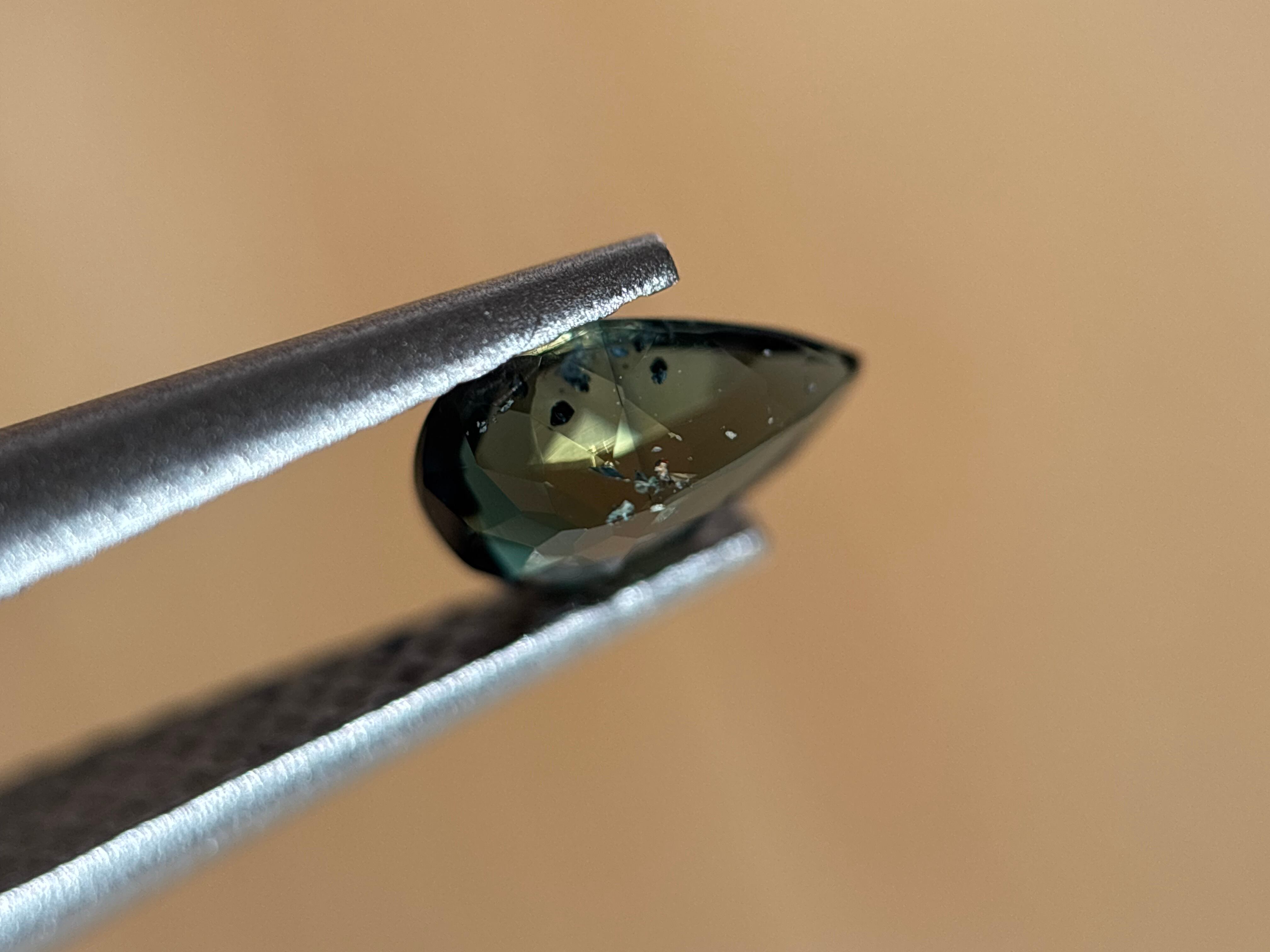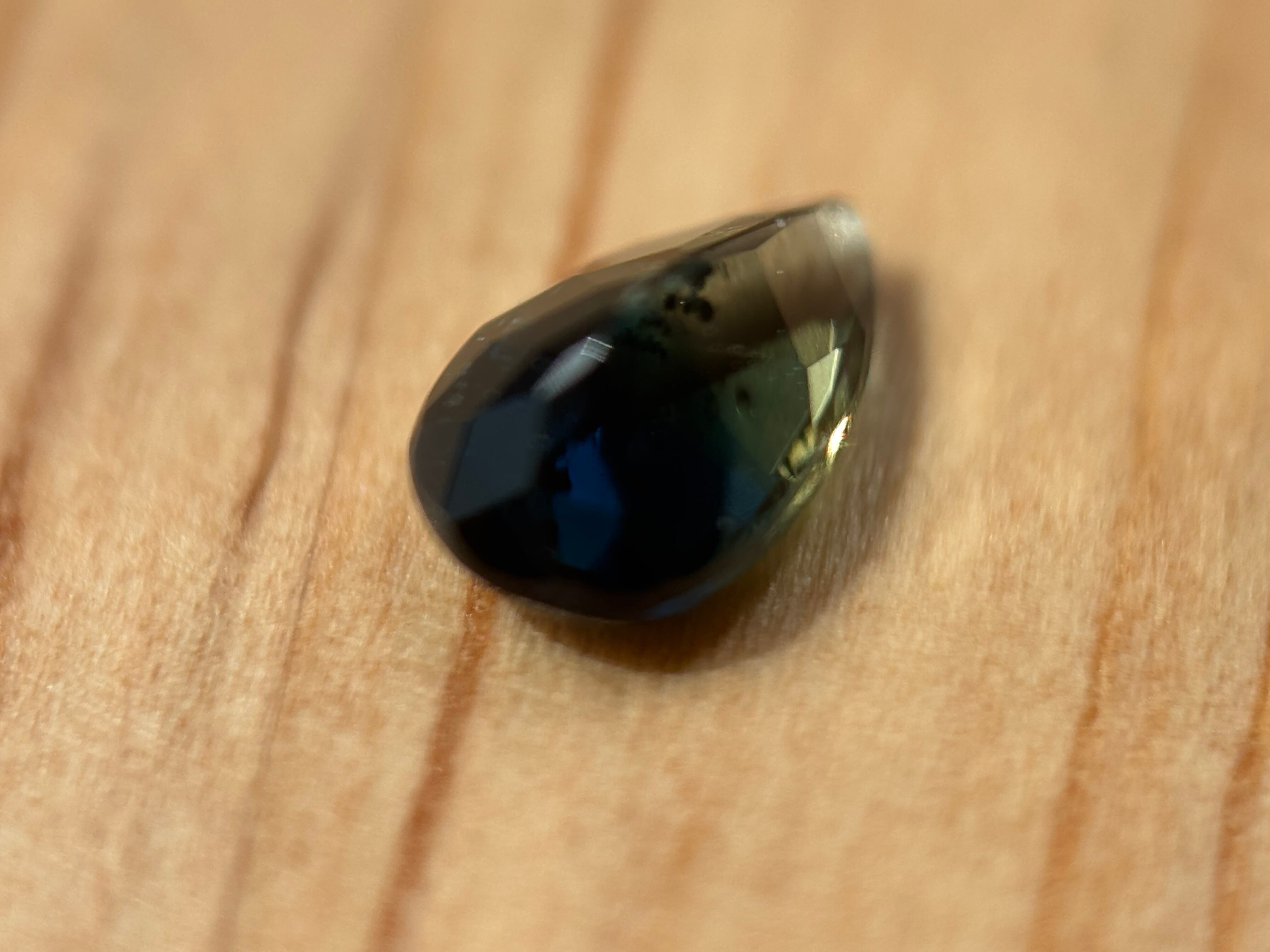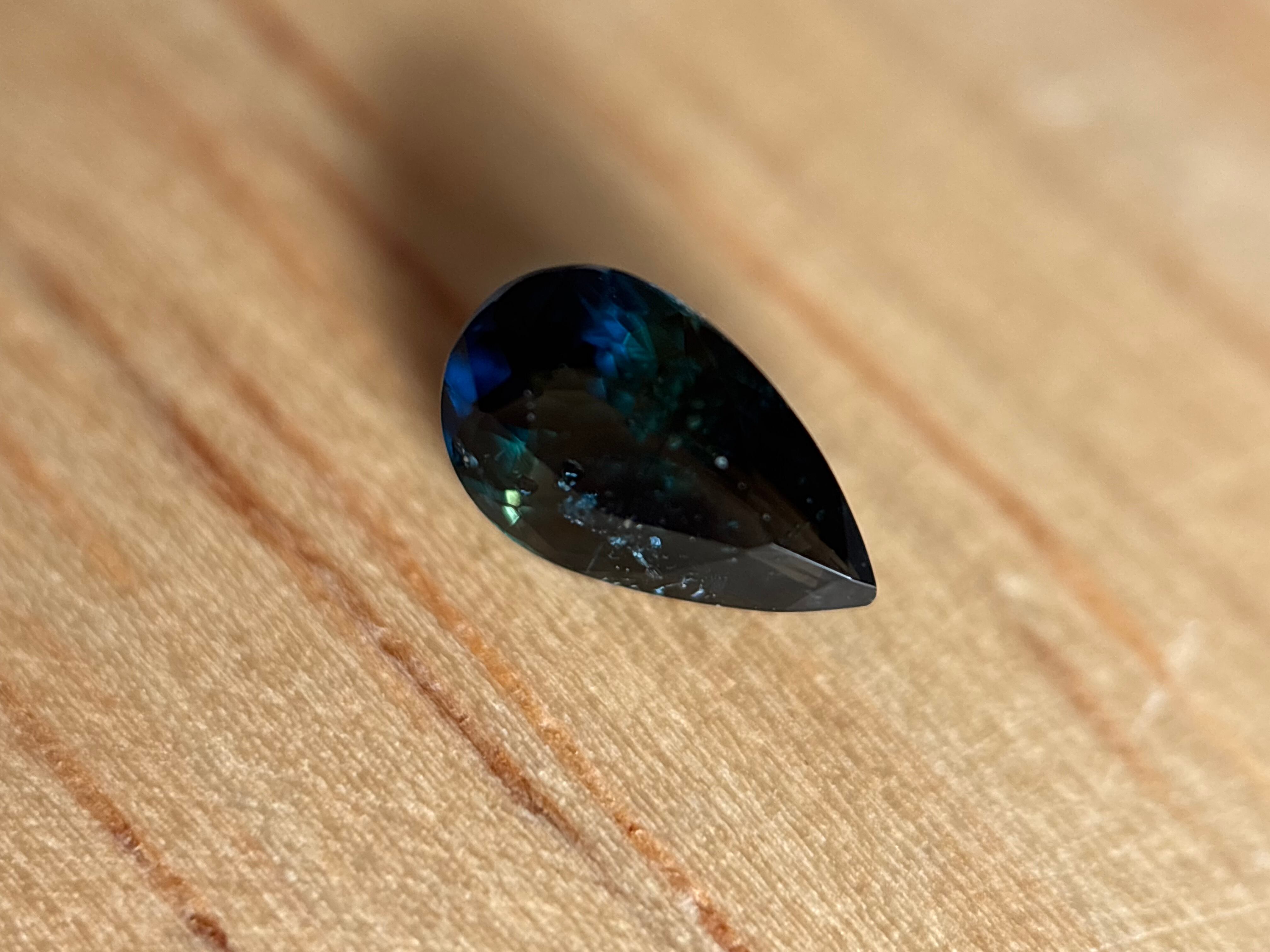 この子は、日光下で観察すると真価を発揮します。ベースは何色とはっきりしている訳ではありませんが、光の角度によって黄色い部分が眩く輝き、その間にはブルーグリーン、時折真っ青な光をチカッと見せる、観察捗る楽しいルースです!