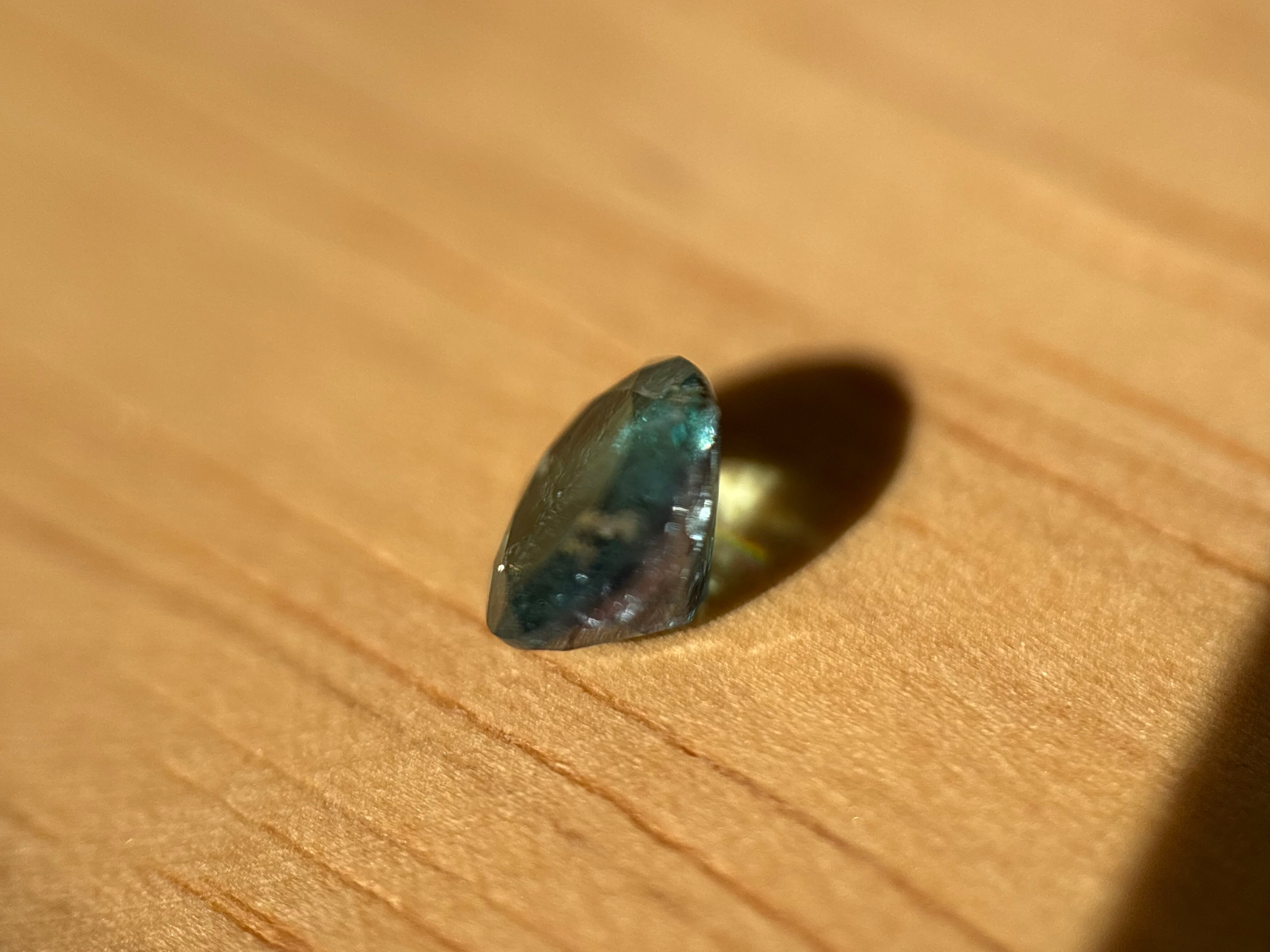 多色性をもち、他の子より一段濃い青緑がリッチなルースです!インクルが濃さを引き立てており、なおかつ透明感もございますので観察が捗ります。
