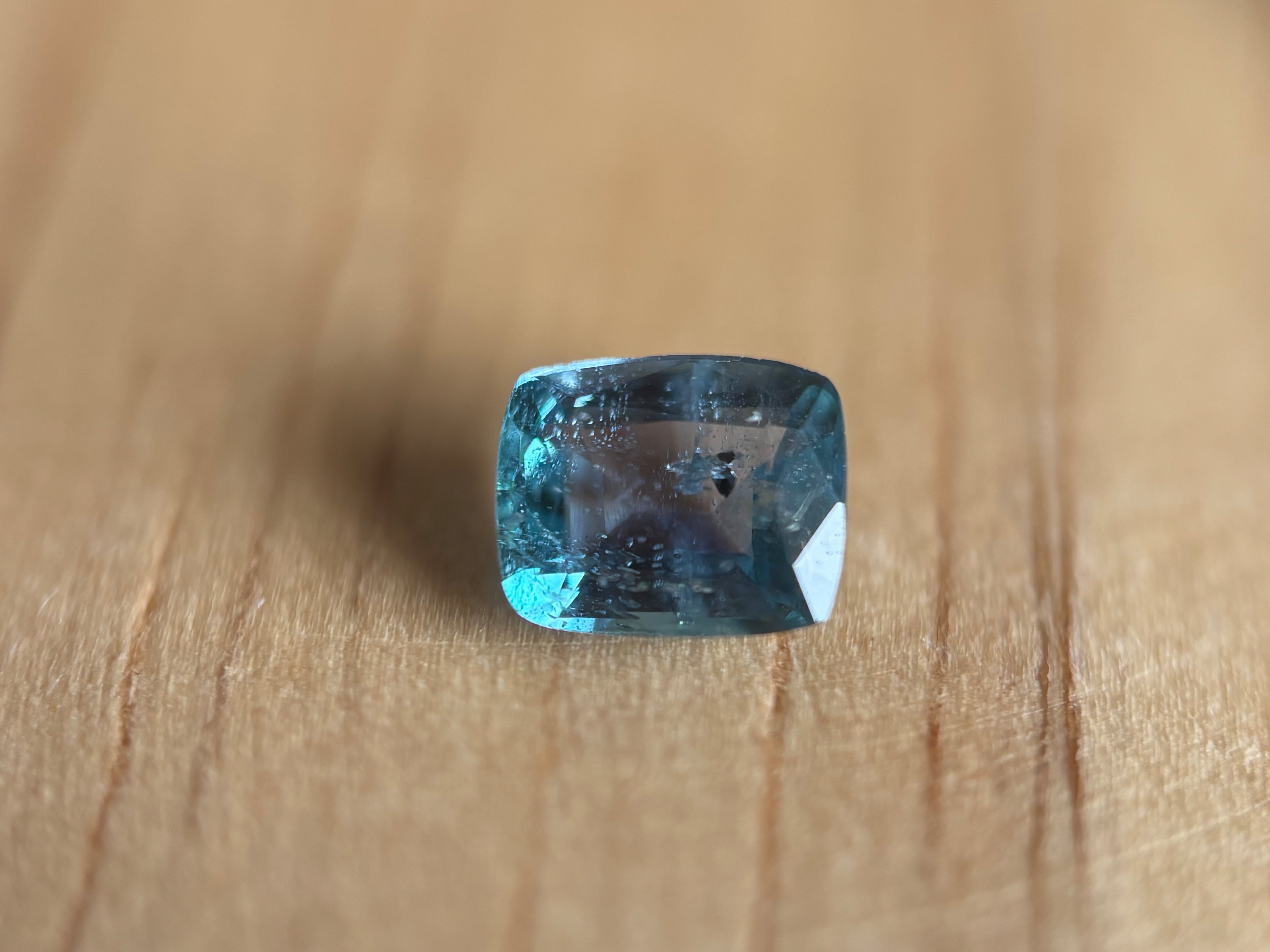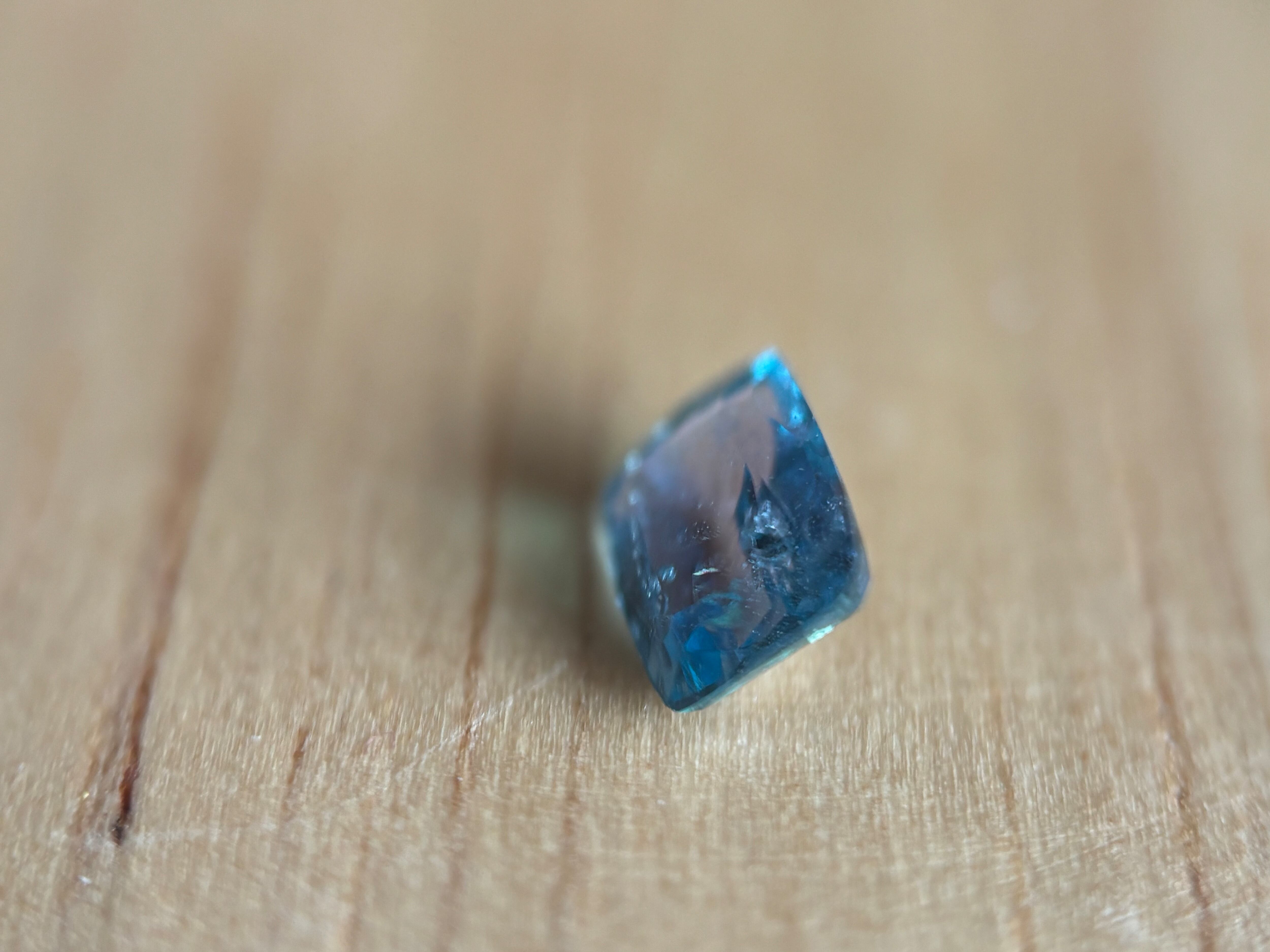 アクアブルーが可愛いルースです。他に出しているルースに比べると色はすごく濃いという訳ではありませんが、多色性には富んでおり、二色鏡での観察も捗ります。