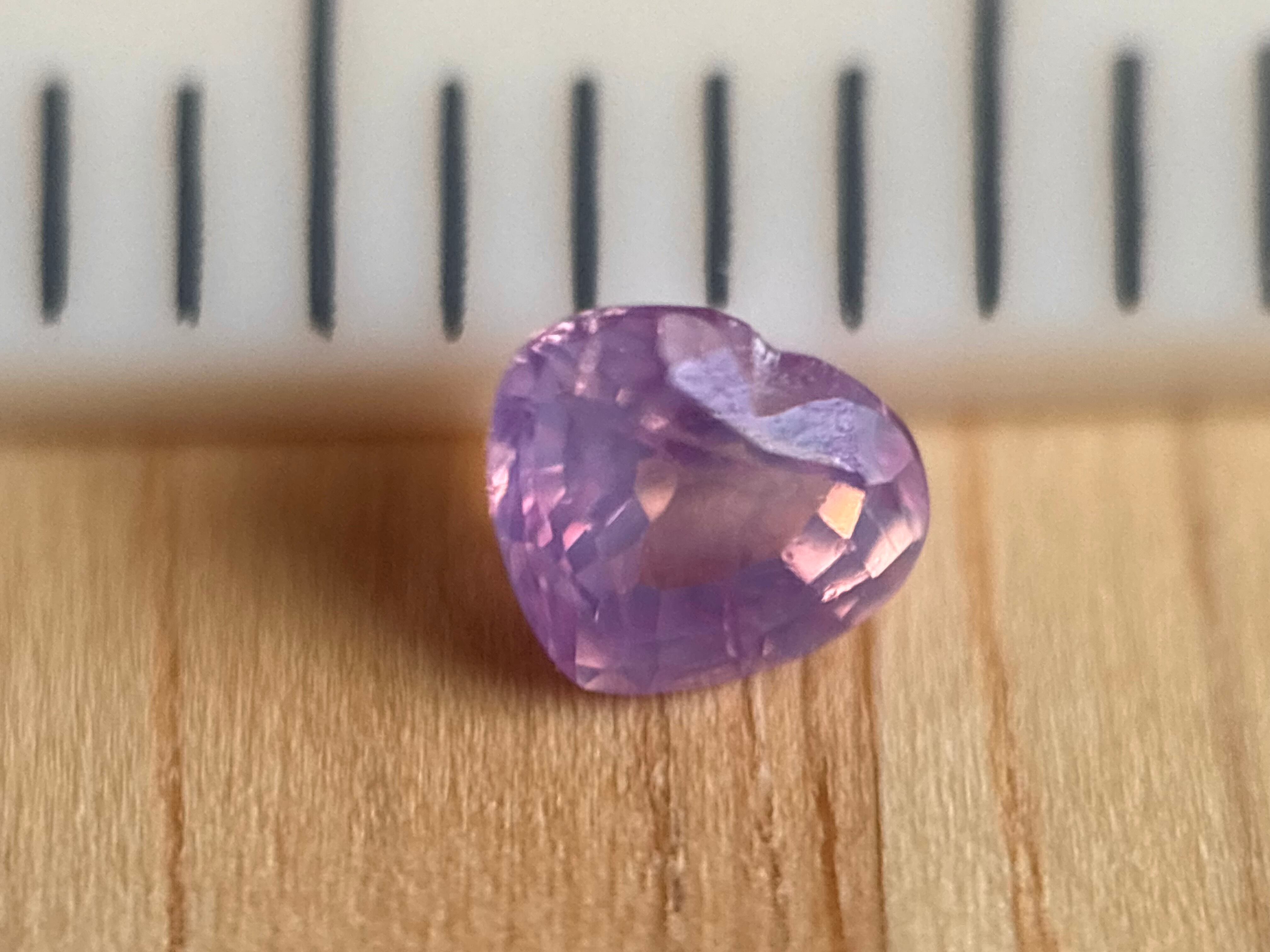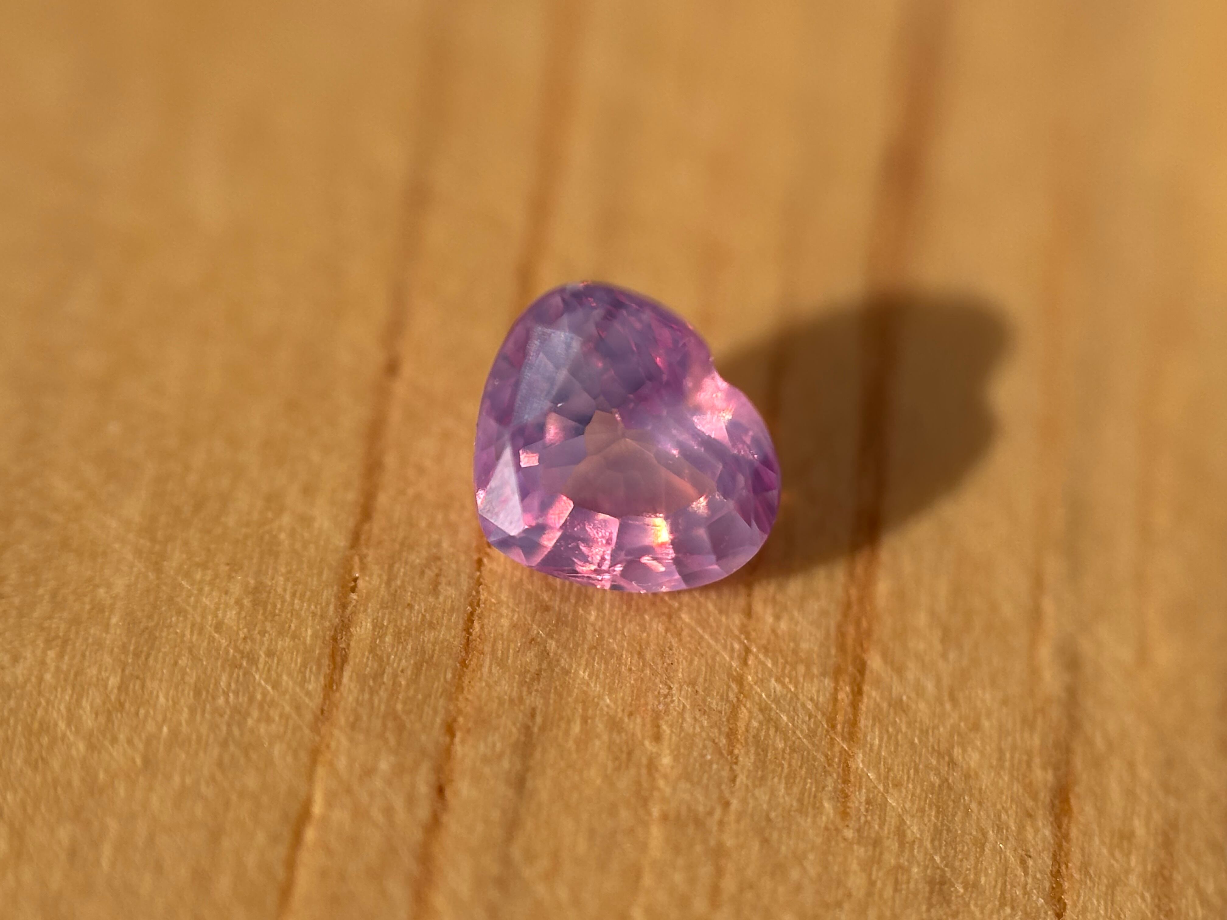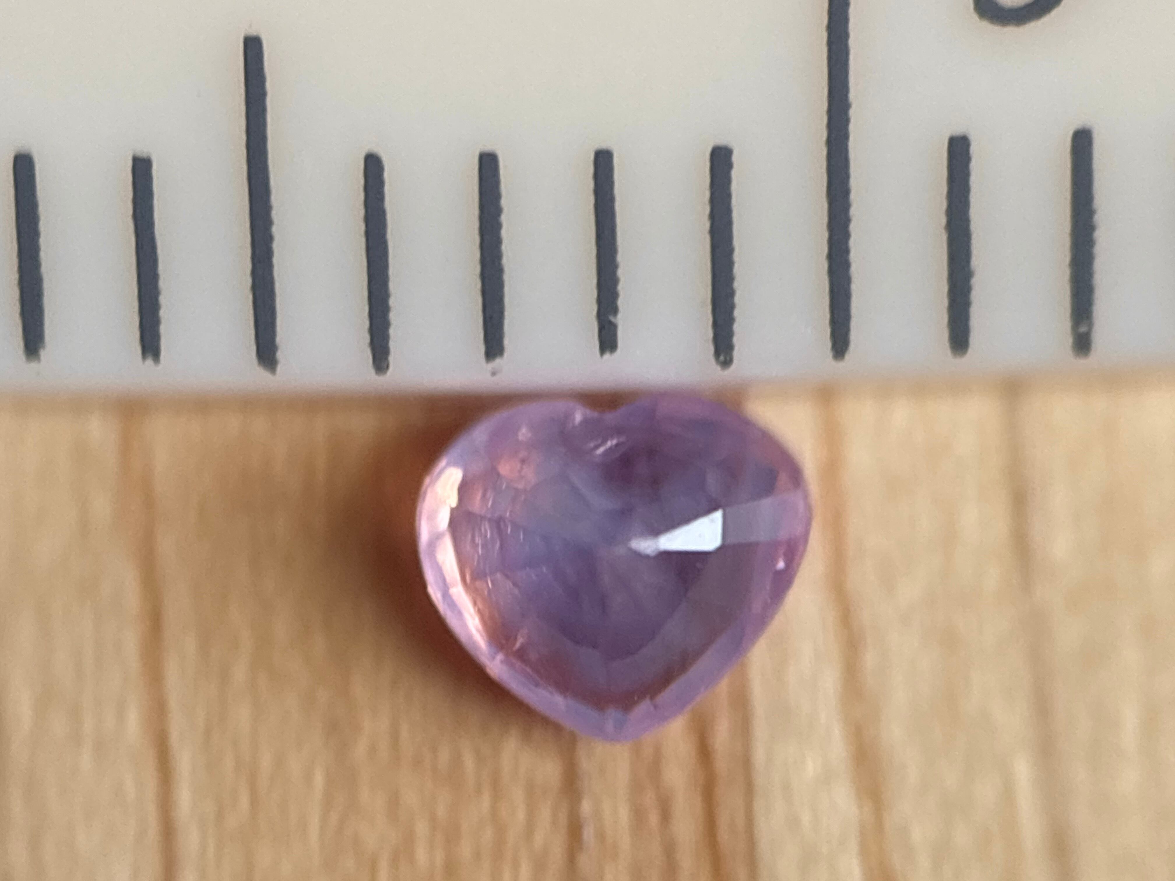 しっかりとしたオレンジ・黄色のシラーが輝く、貴重なハートのシルキーサファイアです。シルキーサファイアもだいぶ出回っては参りましたが、カットや色味、シルキー度合いは玉石混交かと思います。この子は少し小粒ですがシラーが全面とっても強く、色味も可愛いラブリーピンク、黒インクルなどに阻害されない綺麗な子です♪