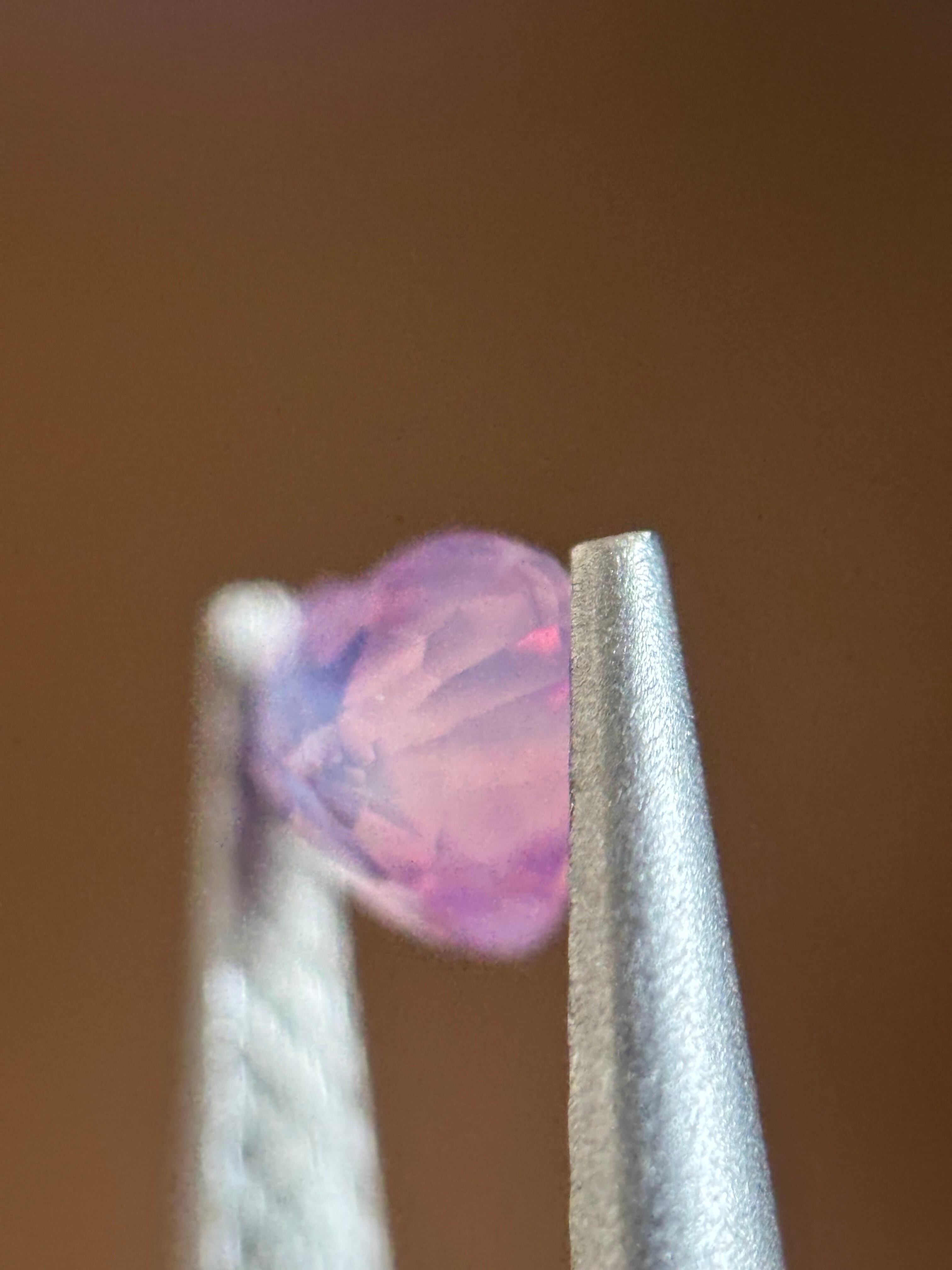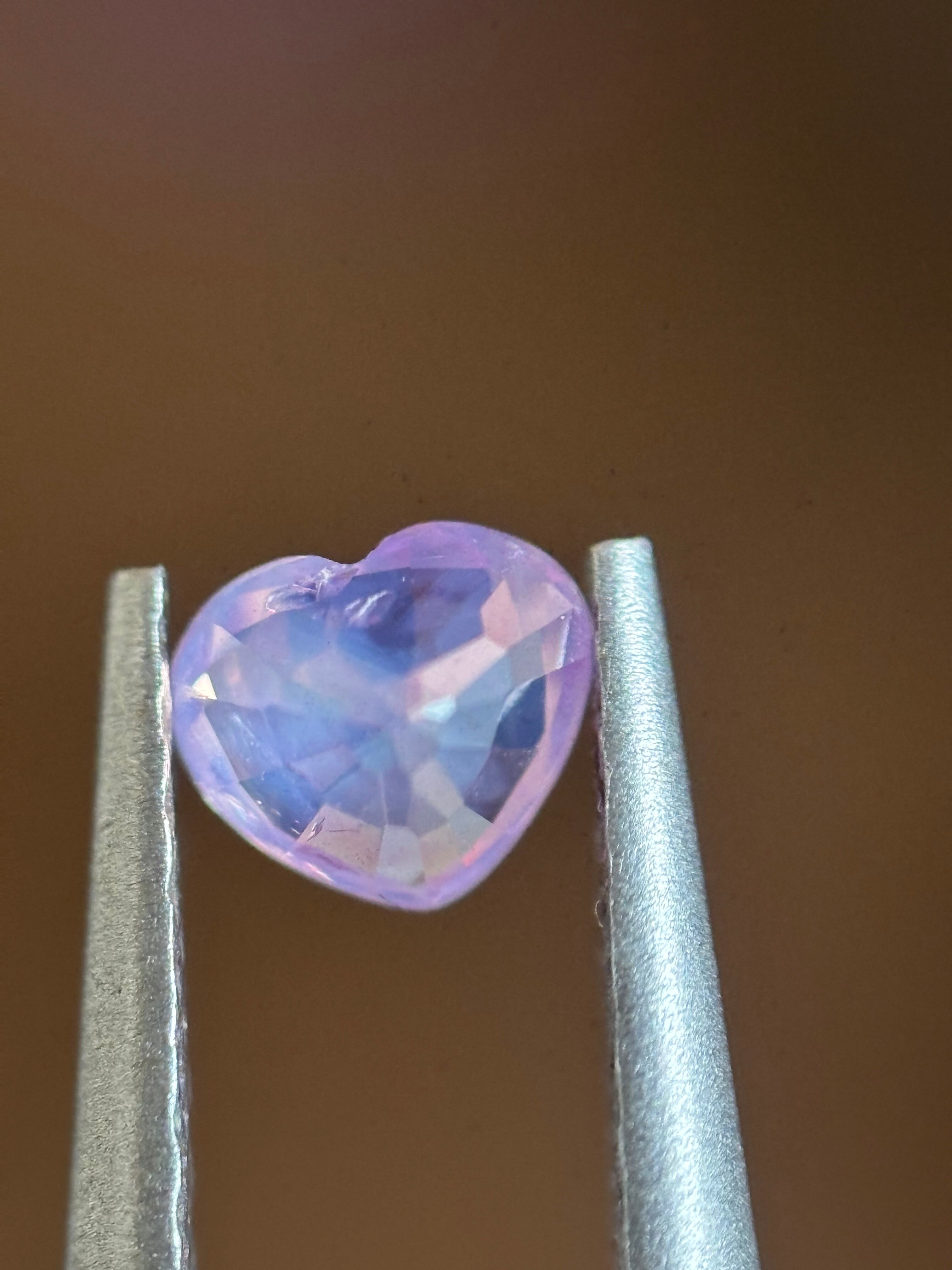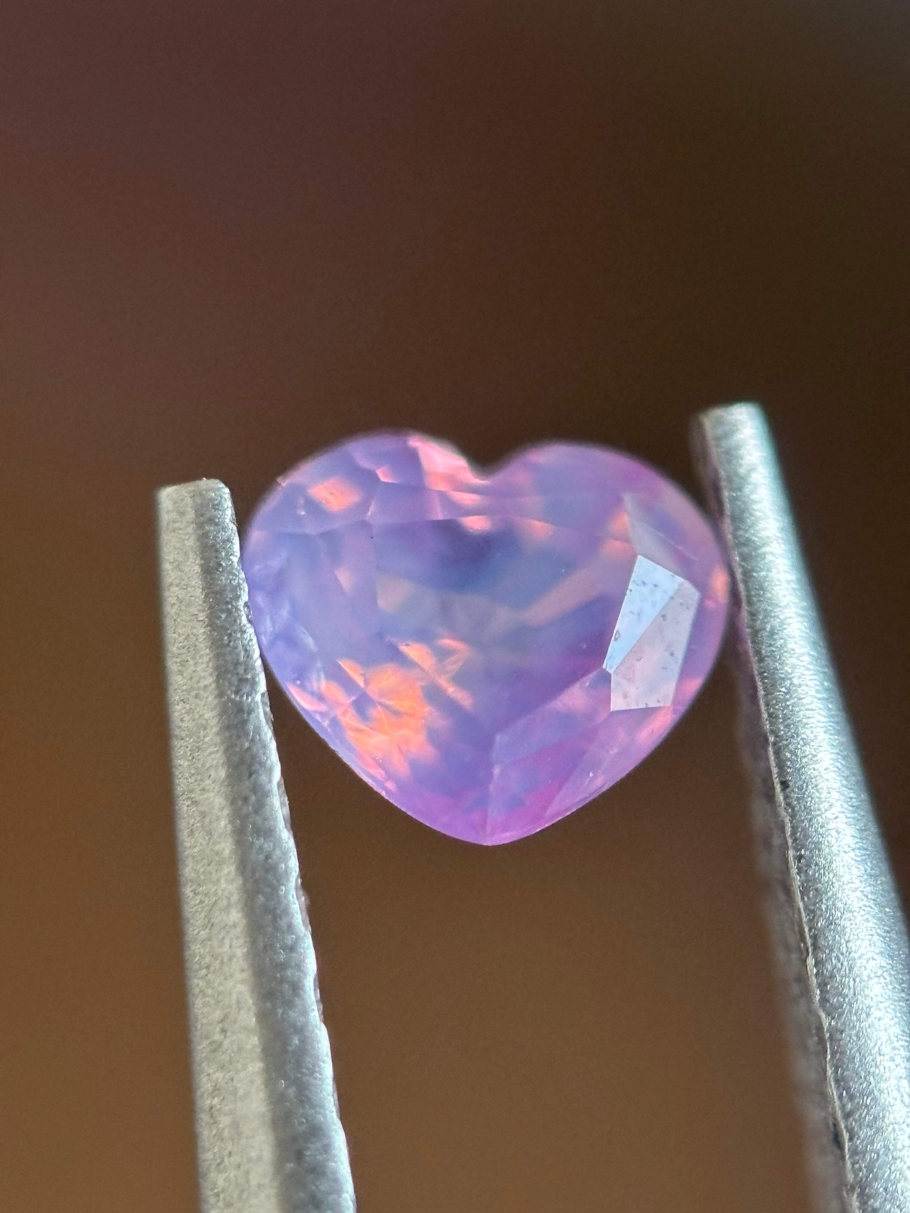 しっかりとしたオレンジ・黄色のシラーが輝く、貴重なハートのシルキーサファイアです。シルキーサファイアもだいぶ出回っては参りましたが、カットや色味、シルキー度合いは玉石混交かと思います。この子は少し小粒ですがシラーが全面とっても強く、色味も可愛いラブリーピンク、黒インクルなどに阻害されない綺麗な子です♪