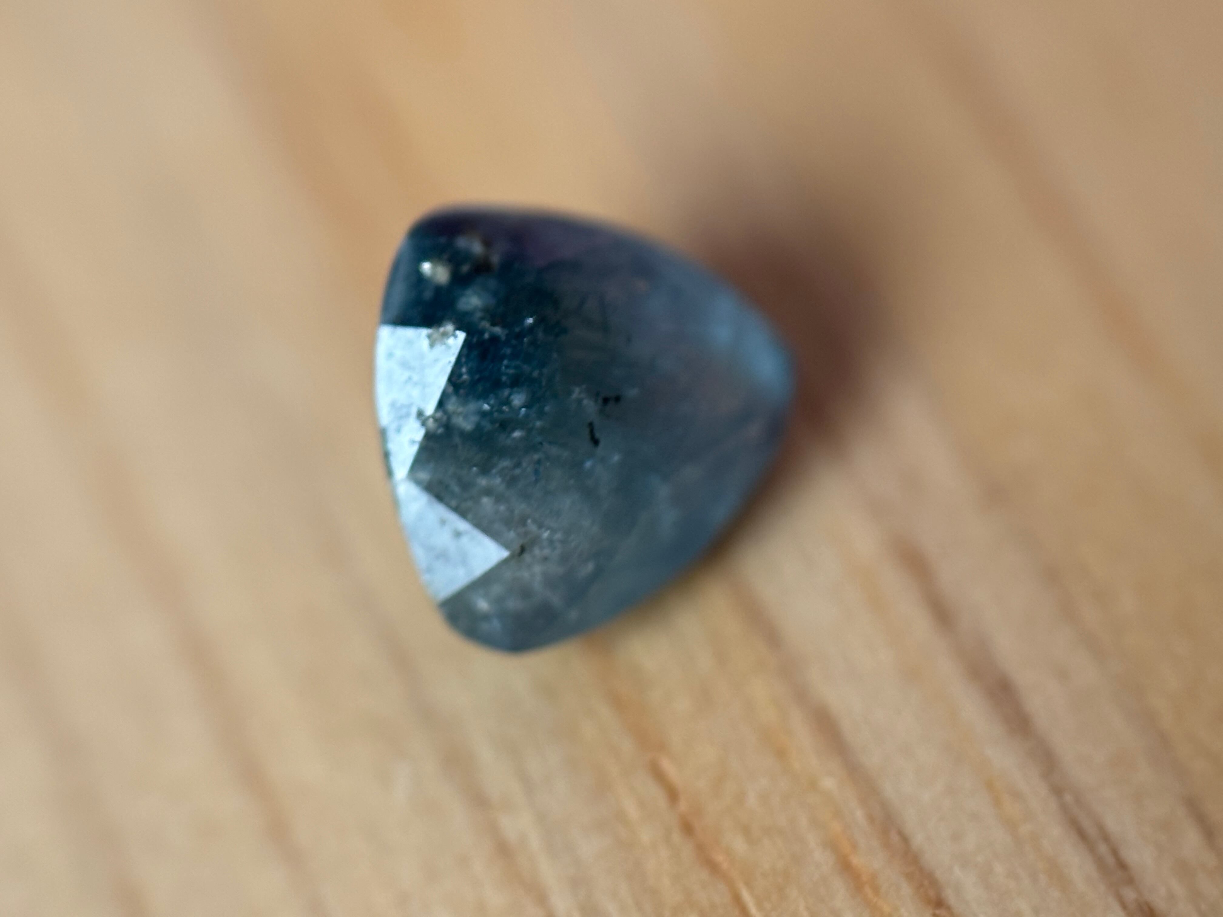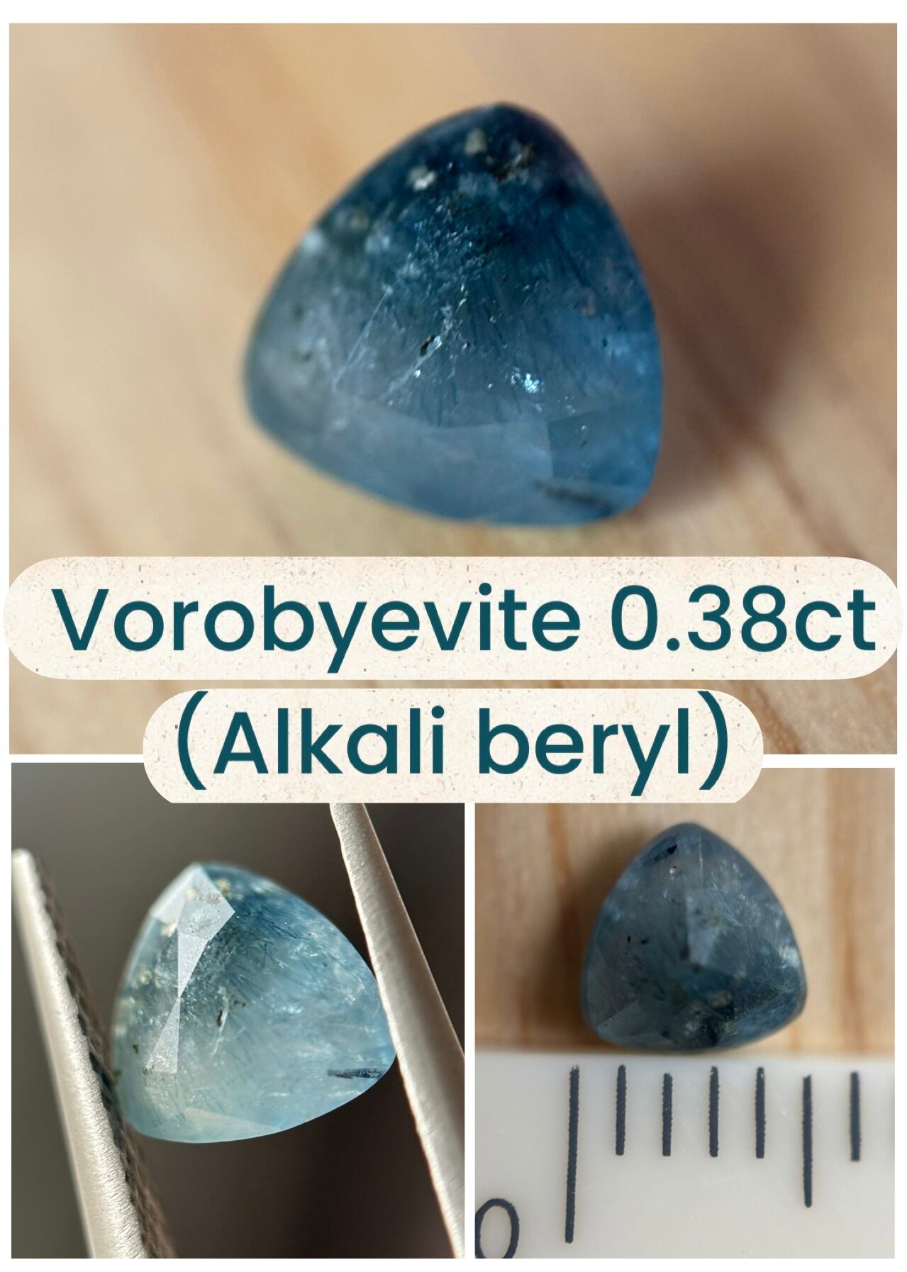 優しい水色ベースですが、てっぺんには濃い色溜まりがあり、そこから広がる針状のインクルージョンが幻想的で、うっとりとしてしまうルースです。流通が少ないため金額はお試し価格での出品ですが、お求めやすい価格かと思われます。