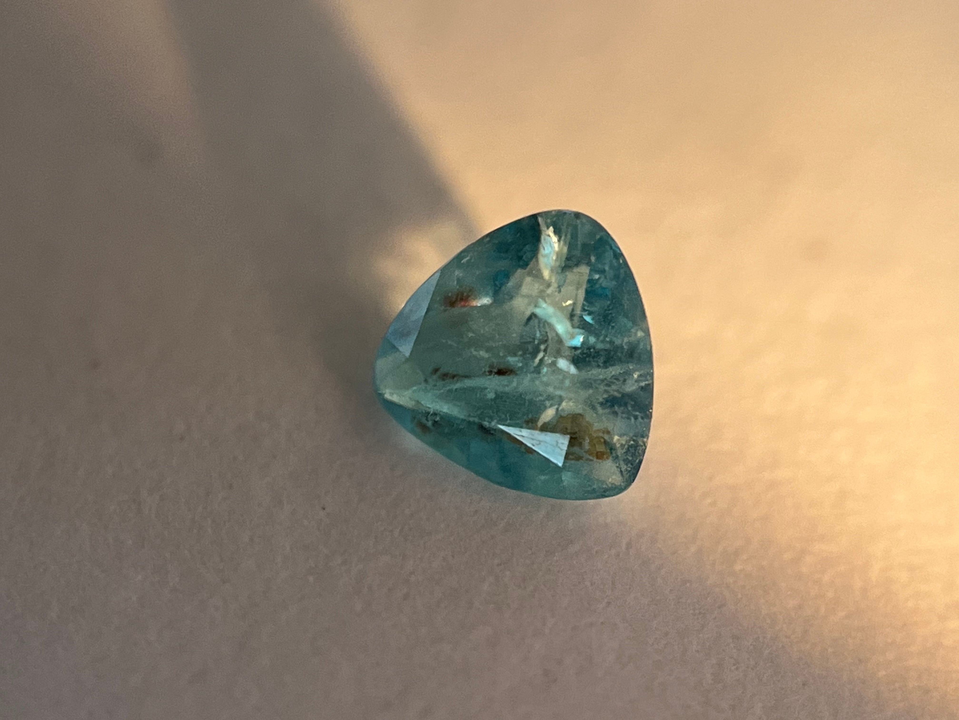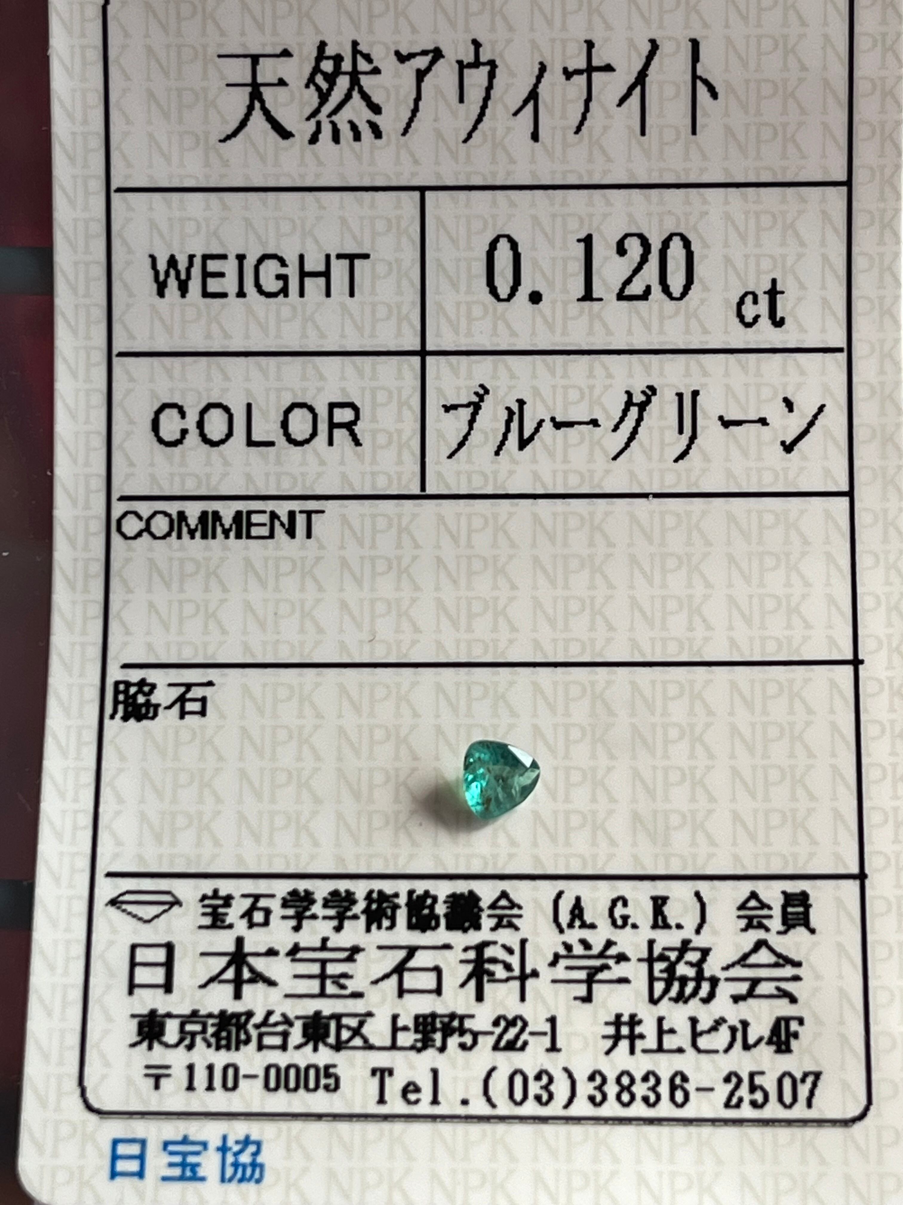この子は0.1ctUPでありながら、インクルが見られるためかなりお安く登場しております。しかし、ほぼマットな質感の子も多く出回る石種にしては透明感もあり、カラーシフトもしっかり感じられます。傾けると、時折黄色っぽい色も見せてくれる楽しい子です。多色性はございません。