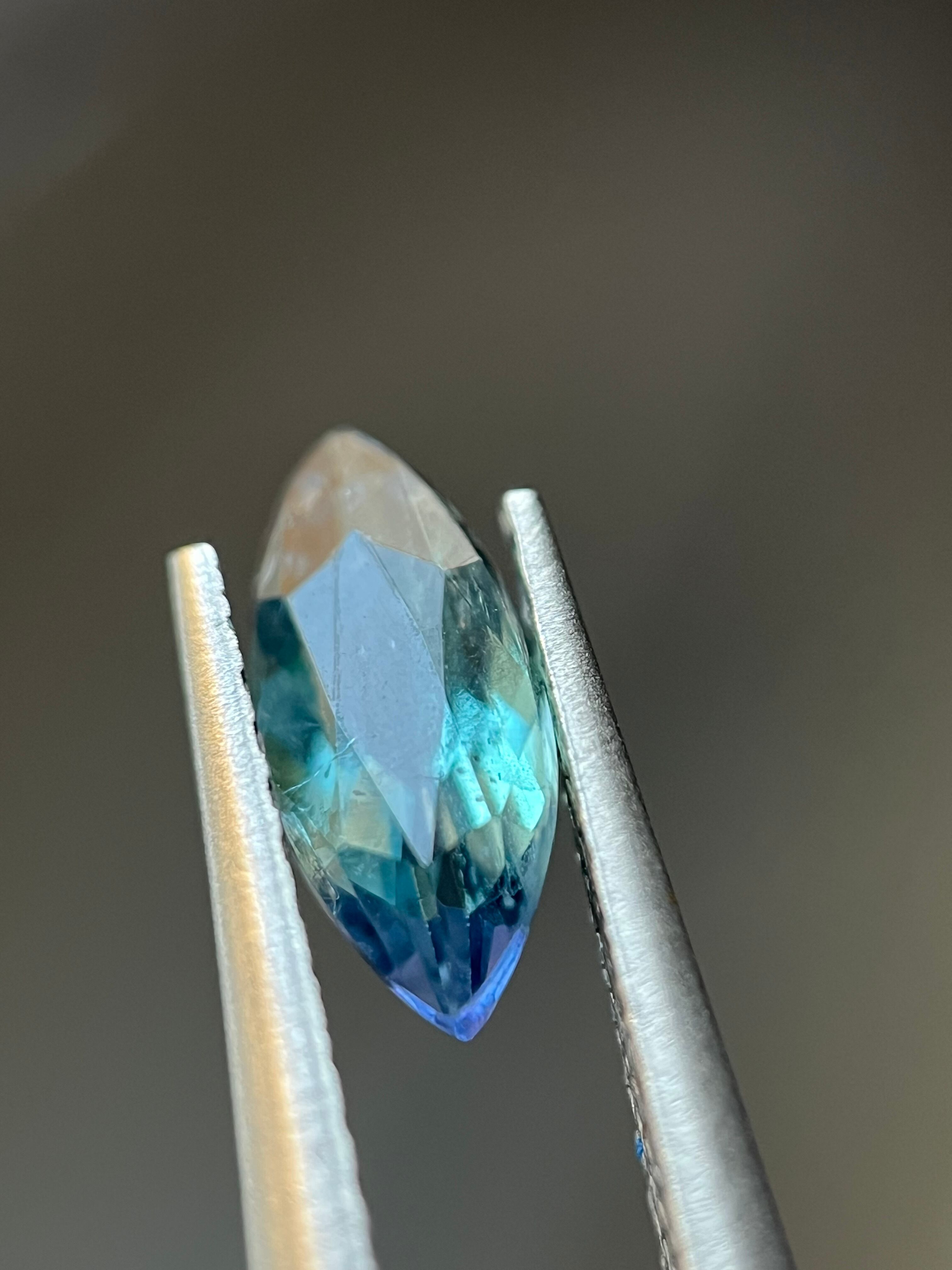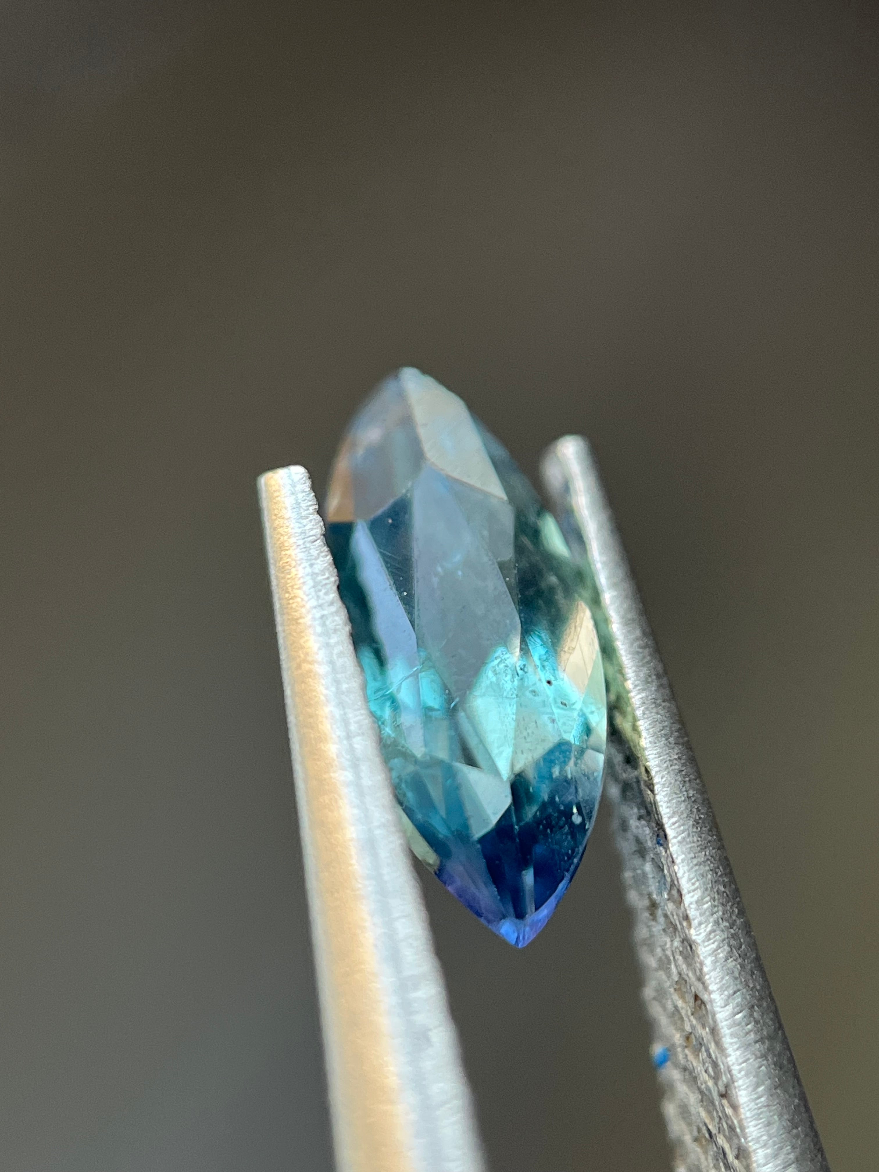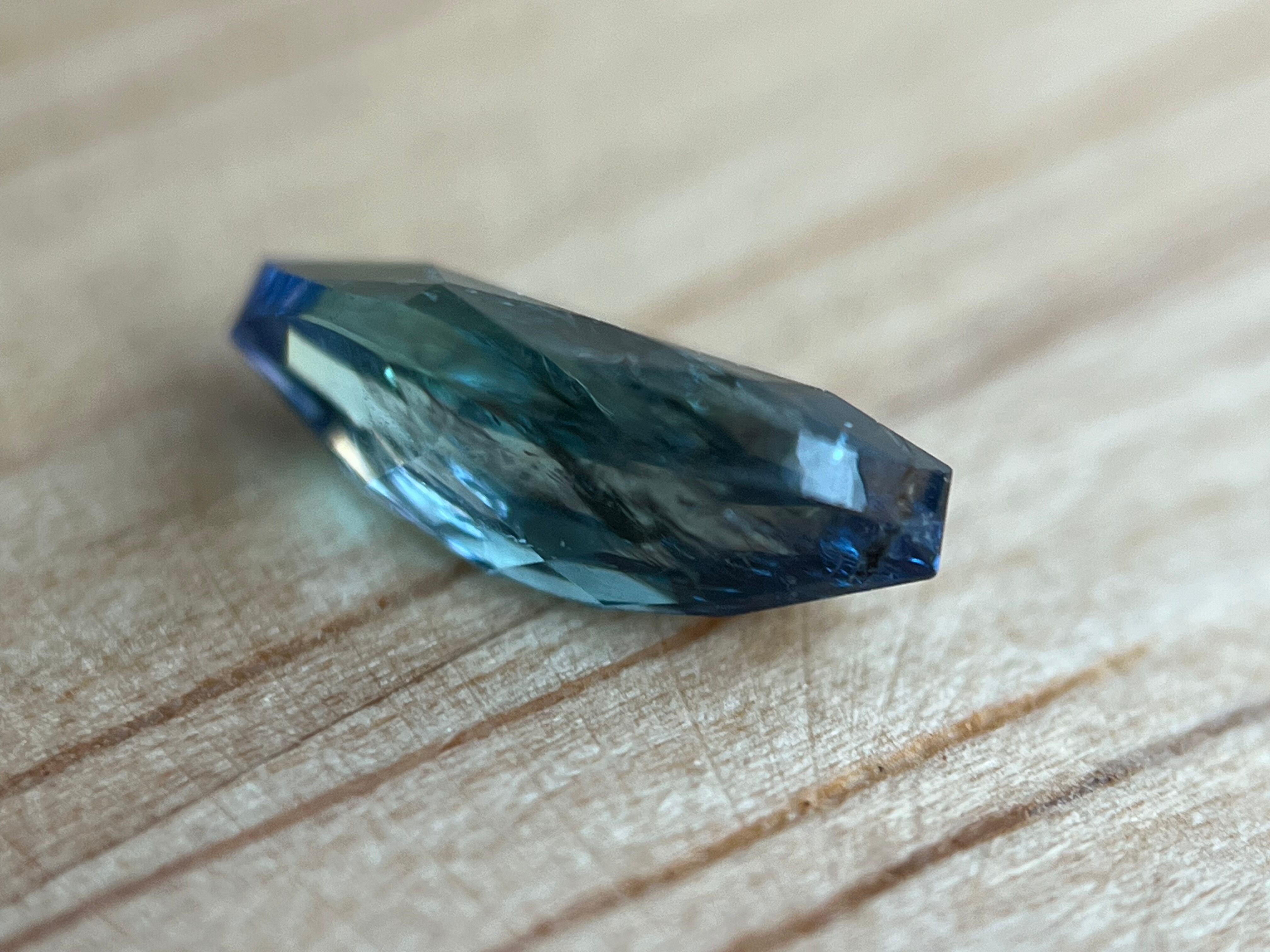 地が青い素敵な子です。コーネルピンには珍しいマーキースの形状です。切り出す方向のおかげか、端と端に紫が溜まる様子はため息が出ます。中央には黄色が差す様子は、青紫緑の色味がメインのコーネルピンの中でもひときわ個性的な子です!まるでモネの絵画、睡蓮を彷彿とさせるような幻想的なお石です。